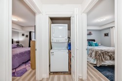 Welcome to Bayside Villas!! This unit is fully renovated!! Walking in you are welcomed by tasteful vinyl plank flooring and a coat closet. The living room is nice and roomy with a large bright window and door to your patio for BBQ or enjoying your morning coffees. The kitchen boasts loads of cupboard and counter space, nice appliances, pantry and room for a nice size family table. There is 3 generous size bedrooms, a full 3 piece bathroom with a newly installed walk in shower. Completing this home is a linen closet and laundry closet. The condo fees include Heat, water, Sewer, Garbage, Maintenance, Snow Removal, Lawn, Professional Management and more. This home is part of the affordable housing program buyer must qualify through the town of Strathmore while this property is on the market for the first 120 days. Please contact listing agent for more details.
