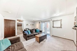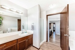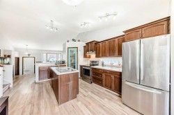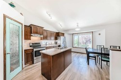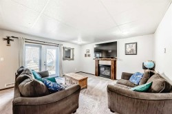 Quiet location on the outskirts of Strathmore. Country living in the city with this beautiful four-level split built by Curbrelan Homes. With charming street appeal, a welcoming veranda, and mature landscaping, this home makes a lasting first impression. The main level offers an open concept from the living room to the dining area and kitchen. The kitchen is a true highlight, featuring an abundance of cabinetry, a corner pantry, a large L-shaped island with an eating bar, and an additional working island with a sink. Kitchen also boasts stainless steel appliances. There is plenty of room for both a dining table and a spacious living area, with large windows that fill the home with natural light.Upstairs you will find three generously sized bedrooms, including a master bedroom with a walk-in closet and a raised four-piece ensuite complete with a separate tub and shower. The additional bedrooms overlook the expansive backyard, which measures 50 by 118 feet. There is another full four-piece bathroom on this level.The lower level, just off the kitchen, is above grade and offers a large great room with a cozy gas fireplace and garden doors that open to the west-facing backyard. Carpet (recently replaced) and tile on third level as well as central air- conditioning . This outdoor space is a true retreat with mature trees and shrubs, plenty of room for patio furniture or even a swimming pool. The yard also has a view of the green space to the south and west.Walk out basement has its own separate entrance leading to a private patio, making it an excellent option for extended family or an illegal suite. Currently, it includes one bedroom and a large living area, but the layout allows for flexible use of the space. Recent updates include shingles in 2025, a hot water tank in 2021, and new garden doors in 2024, all completed with proper permits. The home also features a double heated attached garage with two electric garage door openers. Perfect for investors or first-time buyers, this home offers tremendous value for the price. Shows 10 out of 10!
