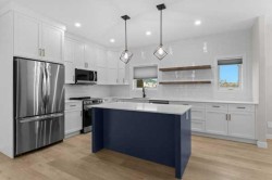 NO CONDO FEES. Located in the vibrant community of Sylvan Lake, this centrally located 2023-1864 square foot built townhouse offers the perfect blend of modern style, space, and convenience. This high-end home features 5 bedrooms in total—3 on the second level, including a spacious primary bedroom with a luxury 4-piece ensuite, plus an additional 4-piece bathroom. The second level also includes a conveniently located laundry right alongside the bedrooms. Beautiful neutral paint tones, an abundance of large windows, and durable vinyl plank flooring create a bright, inviting atmosphere throughout the home. The open-concept main level showcases a bright white kitchen with a walk-in pantry, large island, and adjoining living room, along with a mudroom and a 2-piece bath. Off the kitchen, enjoy access to a back deck overlooking the fully fenced yard. The fully developed basement offers 2 additional bedrooms, a large family room, and another 4-piece bathroom. Just minutes from shopping, schools, the NexSource Centre, the community centre, and only three blocks from beautiful Sylvan Lake, this home delivers exceptional comfort in a great location.