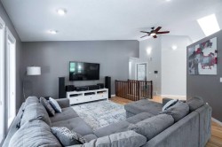 A rare opportunity to enjoy estate-style living—right in town. This one-of-a-kind, fully renovated home is situated on a beautifully treed 1-acre ravine lot that offers privacy, serenity, and direct access to parkland. Thoughtfully redesigned in 2009, it combines high-end finishes with full wheelchair accessibility, including wide hallways, a barrier-free layout, and a convenient elevator lift connecting the basement, main floor, and garage.Inside this spacious bungalow, you'll find 5 bedrooms plus a dedicated office with a built-in Murphy bed, making it a perfect flexible space for guests or remote work. Vaulted ceilings, skylights, and oversized windows flood the open-concept living areas with natural light. The main kitchen features custom cabinetry, a walk-in pantry, quartz countertops, and a built-in coffee bar—while a second full kitchen downstairs adds flexibility for multi-generational living or extended guests.From hardwood floors to cozy fireplaces, this home is both elegant and functional. Unwind in the hot tub, gather around the firepit, or entertain on the expansive deck surrounded by mature trees. There's ample parking including RV space, and the oversized lot offers unmatched space and privacy for an in-town location.Whether you’re looking for wheelchair accessibility, multi-family potential, or simply a peaceful retreat without leaving town—this property delivers.