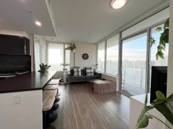 Metrotown – GOLD HOUSE. Beautiful 2-bedroom, 2-bath home with a 375 sq.ft. wraparound patio. Located in the heart of Metrotown, this bright corner suite features expansive windows, 9-foot ceilings, and panoramic mountain, water, and city views. Gourmet Bosch kitchen with custom cabinetry, plus central A/C and heating. Over 40,000 sq ft. of amenities: gym, lounge, study/music rooms, party room, and 24-hour concierge. Steps to Metrotown, SkyTrain, restaurants, Crystal Mall, Central Park, T&T, Superstore, and the library. 1 Parking P3 #125 and 1 Bike locker P3-P310 #139 are included.