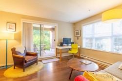 Welcome to Macpherson Walk East - one of Burnaby's most sought-after communities! This rarely available ground-level corner 2 bed 2 bath home offers a perfect blend of comfort, privacy, and tranquility. Featuring nearly 100sf of patio space, surrounded by lush greenery and mature trees, it's an ideal spot for morning coffee or weekend relaxation. You'll find a well-designed open layout with separated bedrooms for privacy, spacious primary suite with dual sinks, a soaker tub, and a shower stall. This home enjoys natural light from multiple exposures and sits on the quiet side away from the Skytrain. Complex is pet-friendly, a beautifully maintained development with landscaped grounds, walk paths and community feel. Conveniently located near Metrotown, Royal Oak Skytrain, schools and parks.