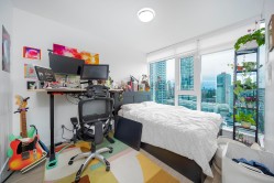 Welcome to Sun Towers 2 located in Prime Metrotown. This 16th floor 3 bedroom 2 bath total 1099 sq.ft is your find. Sleek and beautifully designed kitchen with Bosch appliances, full-height marble slab backsplash. Multi-function shelf in upper cabinet. One minute walk to Skytrain and Bus Station. Steps away from Metrotown, BC's largest Shopping Centre, Crystal Mall and Bonsor Community Center, T & T Supermarket, Library and more. Cozy with beautiful mountain and city view. Features A/C, double-sink in master bathroom, a spa-inspired masterpiece. World class amenities of Solaris Club w/ access to a fully equipped gym, indoor swimming pool, hot tub, steam room/sauna, and more to explore! Live here Love here life starts here! The best investment for a first time buyer or own! Come to see us!