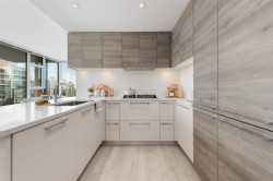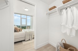 Welcome to King Crossings II, crafted by renowned local developer Cressey. This captivating corner unit boasts striking Southwest mountain & city views, complete with air conditioning and Cressey's signature open kitchen, featuring integrated appliances, quartz countertops, and premium finishes. Enjoy the convenience of the concierge service and indulge in the luxurious clubhouse amenities, including an indoor basketball court, steam and sauna rooms, squash court, gym, lounge, and outdoor theater. Located moments away from supermarkets as well as Edmonds Community Center, schools, parks, and libraries. Comes with one parking and one storage locker.