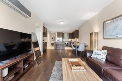 Welcome to Firma, an iconic 26-unit boutique building in Burnaby’s sought-after The Heights neighbourhood. This spacious 1 bed + den corner unit offers over 850 sq.ft. of open living with 9 ft ceilings, creating a real sense of space & easily accommodates house sized furniture. Gourmet kitchen with granite counters & high-end appliances including wine fridge. Wood flooring & AC throughout. Spa inspired marble bathroom vanity & radiant in-floor heating. Enjoy a large terrace with stunning mountain views, partially covered makes it perfect for year-round use. Steps to cafés, shops, parks, and top schools, this is the ideal blend of luxury, comfort, and convenience.
