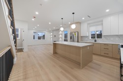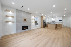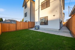 Beautiful 3-level, 2,607 sq. ft. home with a bright, open-concept layout. Main level offers a gourmet kitchen with gas range, quality finishes, and a welcoming living area with gas f/p, plus a second primary bedroom with ensuite and 2-pce powder room. Upstairs features three generous bedrooms, including a primary suite with ensuite and walk-in closet. Ground-level entry includes a large rec room, separate bedroom (no closet), full bathroom, roughed-in laundry, and separate entrance, ideal for extended family. Comfort features include heat pump/air conditioning, HRV, and radiant hot water gas heating. Includes a large attached garage and fenced yard. Prime location near Highgate Mall, Metrotown, transit, recreation centres, Deer Lake Park, and easy highway access. 2-5-10 New Home Warranty.