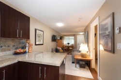 This beautifully kept 1 Bed + Den garden townhome offers 638 sq.ft. of bright, functional living with a 160 sq.ft. private patio—no work needed, just move in and enjoy. Featuring a spacious kitchen with stainless steel appliances, granite counters & breakfast bar, plus a southeast-facing living/dining area with bay window and laminate floors. Large primary bedroom and a den with window perfect for a home office. Quiet courtyard exposure ideal for BBQs and relaxing outdoors. Pet & rental friendly, 1 parking, and low strata fees. Conveniently located at Kingsway & 14th, close to shops, restaurants, community centre, schools & SkyTrain.