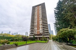 LOCATION! LOCATION! Across the street from Lougheed Mall and SkyTrain, this beautifully maintained and updated 1 bed, 1 bath corner unit at The Oaks offers 673 sq ft of bright living space. Enjoy large windows and sliders to a wraparound balcony with Burnaby Mountain views. Updates include new vinyl flooring, a modern kitchen with sleek cabinetry, countertops, and stainless steel appliances, plus a renovated bathroom with floating vanity. The spacious primary bedroom features two closets. Fantastic amenities include indoor pool, hot tub, sauna, gym, workshop, social lounge with billiards, darts, table tennis, library & more! Includes 1 underground parking stall & storage locker, with extra parking and EV charging available. Heat and hydro included in strata fees! OPEN SUN DEC 14 1130-1230