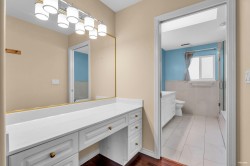 Welcome to this wonderful home with a vaulted ceiling foyer, chandelier and skylights, offering a thoughtful and functional layout and nearly 3,800 sf of living space with 8 bedrooms and 5 baths on a 6,000 sf lot (50x120). The main level includes a bedroom ideal for guests or elderly, plus formal living,dining and large family room off the kitchen and eating area, plus a spacious sunroom perfect for storage or recreation, leading to a large patio and lush green backyard with a brand-new fence for privacy. Upstairs features 4 bedrooms and 3 baths, including a large primary with vanity and skylight. The basement has a separate entry with 3 bedrooms, an excellent mortgage helper. Close to shopping and transit, this home is in great condition and move-in ready.