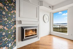 Carefree coastal living awaits! Just steps from the seawalk, this bright and airy ocean-view condo offers the perfect blend of comfort, style, and convenience. With 9-ft ceilings, 2 bedrooms, 2 bathrooms, and a smartly designed 1,055 sq ft layout, this home captures stunning views from both the living room and primary bedroom.The open-concept kitchen features updated appliances—newer fridge & stove, 2021 dishwasher, and a 2020 hot water tank—ideal for everyday living or entertaining. Cozy up by the electric fireplace on stormy nights, or stay cool during the summer with built-in air conditioning.Skip the stairs thanks to elevator access from the secured lobby, and enjoy peace of mind with underground parking and a private storage locker (3’5 x 9’8). Pet-friendly too—bring one cat or dog (under 20 lbs)!With a newer heat pump and unbeatable proximity to the ocean, this move-in ready unit is truly a must-see.