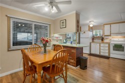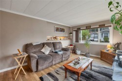 Welcome to affordable and comfortable living. This bright 3-bedroom + den home offers 1,383 sq ft of well-kept, functional space with thoughtful updates throughout. Enjoy low utility costs with newer windows, a cozy gas fireplace, electric baseboard heat, and a 4-year-old hot water tank. The washer and dryer are newer, and the main section of the home features a durable metal roof. The layout feels surprisingly spacious, offering a generous living room with newer laminate flooring, oversized bedrooms, and a den perfect for office or hobby area. The bathroom includes a skylight that fills the space with natural light, plus a soaking tub and separate shower. Outside, enjoy a covered carport with an attached in-house workshop, along with a greenhouse and storage shed for gardening or additional storage. Located near schools, North Island College, Beaver Lodge Trails, the Sportsplex, shopping, and minutes to the ocean and Seawalk. Well-managed park with no rentals and no age restrictions.