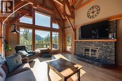 Experience exceptional craftsmanship and complete privacy with this custom-built 3-5 bedroom, 3-bathroom timber-frame home set on 6.62 acres in the stunning Pass Creek Valley, ideally located between Nelson and Castlegar. The main floor welcomes you into the open-concept living area, highlighted by a 32-foot vaulted ceiling and a striking stone gas fireplace. The chef’s kitchen features granite countertops, a large island, stainless steel appliances, and rich cherry wood cabinetry—perfect for both entertaining and everyday living. Additional main-floor features include a home gym, powder room, laundry, office, and access to an expansive 1,400 sq. ft. deck ideal for outdoor gatherings or just soaking in the sunshine and the valley view. Both the home gym and office can be utilized as bedrooms. The attached three-car garage provides ample space for vehicles and equipment. Upstairs, the primary suite offers a luxurious ensuite and walk-in closet, while two additional bedrooms, a full bath, and a spacious loft-style recreation area provide room for family and guests alike. A pull down staircase has been installed to create access to the ""third floor"" loft space, perfect for yoga or meditation. Remarkably, this property offers some cell service—something not always found in Pass Creek—and features Starlink internet for fast, dependable connectivity. This remarkable home blends timeless design, luxury, and privacy in a location that embraces the best of the West Kootenay lifestyle. (id:27)