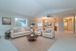 Tucked away from the everyday bustle yet ideally located within the complex, this spacious DETACHED corner-unit rancher in the gated 55+ Cottage Grove community offers 1,494 sq. ft. of thoughtfully designed single-level living on a 4,636 sq. ft. lot w. a PRIVATE BACKYARD. Featuring 2 large bds & 2 full bths (walk-in closest in primary), it boasts tile floors, custom cabinetry, quartz counters, designer paint, vaulted ceilings, and plenty of natural light. Recent upgrades include a new A/C, furnace, and hot water tank/newer appliances. Semi-open layout, high-efficiency gas fireplace, massive crawlspace, double garage, and fenced backyard. Walking distance to shopping, recreation, and transit, with a low $156/month strata fee — a rare gem in one of Chilliwack’s most desirable communities.