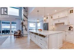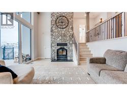 This fabulous Kalamalka Lakeview property with in-ground saltwater pool in desirable Coldstream takes move-in ready to the next level. Enter through the main custom solid wood door with extensive rubber seals for extra sound proofing as you will find with all the interior doors. The main floor contains an open-concept layout centered around maximizing the views. With ceilings lofted to the bonus room on the second floor and a breathtaking marble fireplace, the living room is ideal for entertaining. The adjacent kitchen comes completed with classic white cabinetry, a massive center island, top of the line appliances, and a walk-in pantry. Further, the main floor master suite is an idyllic retreat with a soaker tub in the ensuite bathroom and large walk-in closet. From this level, a covered balcony with built-in grill awaits seasonal outdoor dining. Below the main floor, an expansive lower floor contains four bedrooms, two bathrooms, two laundry spaces, and a bonus room. A family room on this level has a handsome stone-faced fireplace. From here, walk out onto a covered balcony with hot tub and breathtaking views. (id:27)
