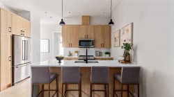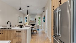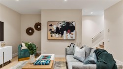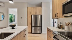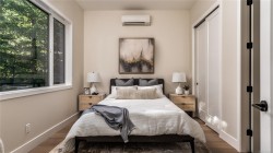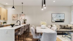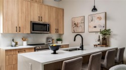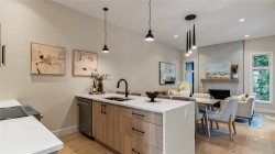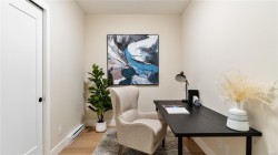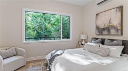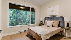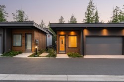 This spacious 3-bedroom, 3-bath townhome at Olympic Breeze offers 1,767ft² of thoughtfully designed living space backing onto a protected riparian greenbelt. The main level features a primary bedroom with ensuite, open-concept living/dining, a modern kitchen with waterfall-edge quartz countertops, and a balcony with peaceful forest views. The lower level includes two additional bedrooms, a full bath, and a flexible second living area - ideal for guests, a home office, or growing families. Part of a boutique, 14-unit community, Olympic Breeze blends West Coast Contemporary design with energy efficiency, built to BC Step Code 3 standards. Each home includes a high-efficiency heat pump for year-round heating and cooling, wide-plank engineered hardwood, a gas fireplace, stainless steel appliances, and a double garage with EV outlet. Steps from Olympic View Golf Course, parks, and trails, this is modern living surrounded by nature.