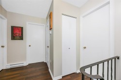 NO STRATA FEES — The lush, landscaped gardens are the star of this updated 3-bed, 2-bath half duplex. Enjoy 9 fruit varieties, 4+ veggie beds, hydrangeas, and a dreamy moonlight flower garden. Inside, you’ll find fresh vinyl plank flooring, new baseboards, lighting, and two fully renovated bathrooms. The crisp “Simply White” paint—an award-winning shade that flatters both cool and warm tones—brightens every room. The main level features a spacious, open layout with a cozy gas fireplace, a dining area, and a kitchen that opens to a large deck and a fenced backyard. Bonus features include a 3-season Oasis, RV parking, a movable rear gate, and even room for a chicken coop. Two storage sheds, quiet neighbours, and a short walk to shops and parks complete the picture. All this—for the price of a condo!