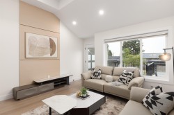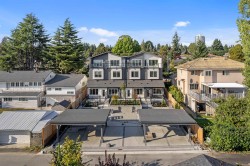 Aspen By Zako. A boutique collection of elevated living in the heart of Maillardville, Coquitlam. Discover refined living in this stunning West Coquitlam home featuring 4 bedrooms + den across 3 spacious levels. Soaring 11.5’ ceilings, high-end cabinetry, luxury laminate flooring, glass railings, and a custom lit walk-in closet add elegance throughout. The chef-inspired kitchen boasts Bosch appliances, a gas cooktop, built-in oven & microwave. Enjoy year-round comfort with A/C, a heat pump, and on-demand hot water. Smart features include a Nest Hub, smart thermostat, speakers, lighting control, and keyless entry that is all phone-controlled. Steps to top schools, transit, and parks. This energy-efficient Step Code 3 home truly has it all. Call to book your private showing today