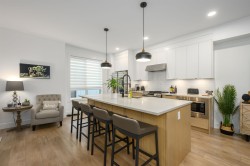 AMAZING ROOFTOP DECK! This bright 3 bed, 3 bath townhome in Burke Mountain offers a rare 600 plus square foot private rooftop retreat complete with a soothing hot tub and open mountain views. It is an inviting space for quiet mornings, outdoor meals, and evening relaxation. Inside you will find 10 foot ceilings, wide plank floors, generous windows, and a well designed kitchen with quartz surfaces, a gas stove, stainless appliances, and a large island. The upper level includes three comfortable bedrooms, a walk in closet, and ensuite in the primary. Year round comfort comes from Heat Pump and forced air heating plus a tankless on demand hot water system. A side by side garage with epoxy flooring and added storage completes this impressive home.
