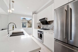 Welcome to Ballantree by Polygon! This craftsman-style 4 bed, 4 bath END UNIT offers 2002 sq ft of bright, spacious living in Coquitlam’s Burke Mountain. Nestled in nature, this like-new home boasts an open kitchen with a huge island, stone counters, marble backsplash, SS appliances, and gas cooktop. Enjoy expansive windows, 9’ ceilings, vinyl floors, flex area - perfect for home office, crown moulding and custom feature wall with built-in cabinetry and a large, fully fenced yard off the main floor. The primary bed features a spa-inspired bath, walk-in closet with custom closet, while the lower level offers a bedroom and bath. Complete with side-by-side garage, EV-ready outlet, and balance of New Home Warranty, all in a family-friendly community close to schools, parks, trails and transit.
