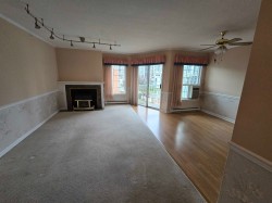 Welcome to BURLINGTON ESTATES.ADULT 55+ BUILDING! This top-floor home is exceptionally clean and a pleasure to show. Ideally located on the quiet, cool side of the building, it overlooks the landscaped courtyard and community centre. Spacious 2 bedroom, 2 bathroom layout featuring a generous primary suite with his-and-hers closets (with organizers) and a 4-piece ensuite complete with double vanity and walk-in tub. The bright second bathroom offers a low-maintenance 1-piece shower stall. Large laundry/storage room with plenty of in-suite storage. Open living and dining area with Valor fireplace and access to the large covered sundeck. Beautifully updated kitchen with newer cabinetry, Corian counters, stainless steel appliances, undermount sink, and excellent cupboard and counter space.