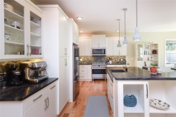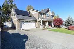 Come and view this gorgeous, quality-built Croonen Construction 2-storey home featuring 4 bedrooms, 3 bathrooms, and an upper bonus room backing onto a peaceful forested park. Inside, enjoy beautiful hardwood floors and a bright open-concept living area with large windows and a contemporary kitchen with new stainless steel appliances. The home includes a professionally installed Enphase solar panel system, reducing energy costs to almost nothing, a detached shop wired and insulated with wood walls, new washer/dryer, 9' ceilings, and a 2-car garage with RV parking. Step outside to a private, beautifully landscaped backyard with irrigation, hot tub, and nearby walking trails. Perfectly located close to schools, shopping, and highway access—this home combines comfort, sustainability, and style.