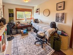 Situated just on the edge of the city limits with stunning mountain views, this rare 0.26-acre property offers the perfect blend of space, comfort, and convenience. The 1,420 sq. ft. bungalow has been thoughtfully maintained and upgraded, featuring three spacious bedrooms or 2 + den, two beautifully updated bathrooms, and the added convenience of main floor laundry with front-loading machines. The bright kitchen and dining area flow seamlessly in an open floor plan, while the living room showcases hardwood floors and a charming wood brick fireplace as a cozy focal point. A side enclosed porch leads to a partial basement, providing abundant storage and direct access to both the single carport and the backyard. Practical updates include a high-efficiency furnace installed in 2022, new electrical service, a hot water heater replaced in 2018, and updated vinyl windows completed in 2010/11. Connected to city sewer just three years ago and supplied with city water, this home is move-in ready. The beautifully landscaped yard is complete with a gazebo, garden beds, and generous RV parking, making it a true gem for those seeking both lifestyle and location.