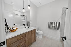 Welcome to your mountain modern retreat, built by Cypress Homes. Perfectly positioned along the breathtaking Wildstone Golf Course in the heart of the Kootenay's, this brand new chalet style home combines rustic elegance with upscale finishes and an open-concept layout that’s ideal for both relaxing and entertaining. The main floor is bathed in natural light thanks to expansive windows, and the chef-inspired kitchen is a showstopper, featuring a quartz eat in island, stainless steel appliances, and custom millwork with a designer hood fan. Cozy up in the inviting living room with a built-in gas fireplace, or step through to the covered patio for panoramic fairway views. The spacious primary suite offers a spa inspired ensuite with a tiled shower, walk-in closet, main floor laundry, and generous storage throughout. The lower level delivers even more space, including a rec room, two large bedrooms with custom closets, full bath, and ample storage. Outdoors, enjoy a covered deck complete with hot tub and natural gas BBQ hookups, perfect for unwinding after a day on the course. GST applicable.