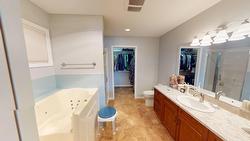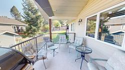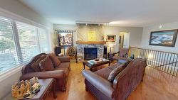 Welcome to Northwood Estates — a desirable gated community offering comfort, security, and quality living. This custom-designed bungalow has been thoughtfully adapted for accessibility, featuring no-step entries, wider doorways, barrier-free design, and a convenient stairlift to the lower level. Step inside to a bright, open-concept layout centered around a large kitchen island with granite countertops, perfect for entertaining or casual dining. The cozy living room is enhanced by a natural gas fireplace, creating a warm and inviting space. The spacious primary suite includes a custom ensuite and walk-in closet, while a main floor den can easily serve as an additional bedroom or home office. The fully finished walk-out basement continues the open design and includes an unauthorized suite—ideal for extended family or guests. It offers two additional bedrooms, a kitchen, dining and living area with another gas fireplace, and access to a covered lower patio. Built for comfort and efficiency, this home includes a high-efficiency furnace, central air conditioning, and water filtration system. Enjoy the covered upper deck, lower patio, and the peace of mind that comes with life in Northwood Estates—a welcoming, well-maintained gated community close to all amenities. Seller reserves the right to review offers on October 14, 2025 at 2PM