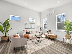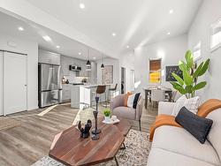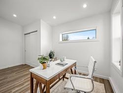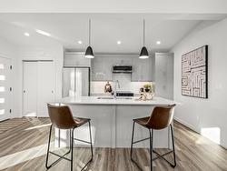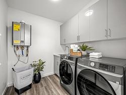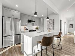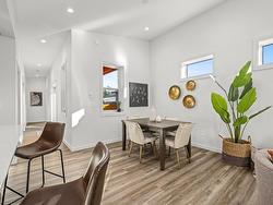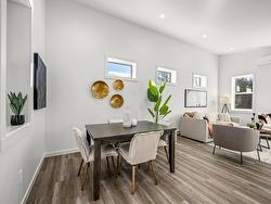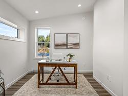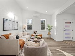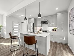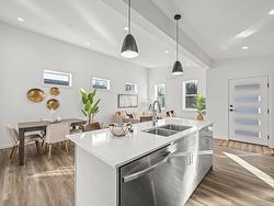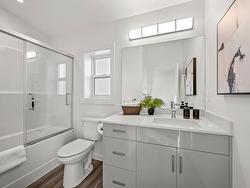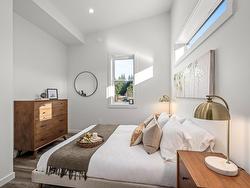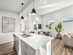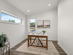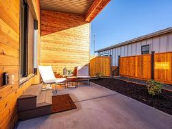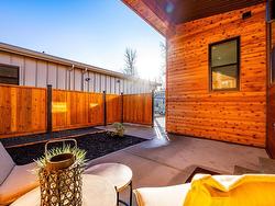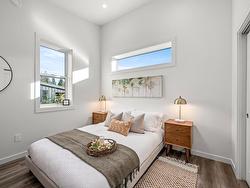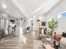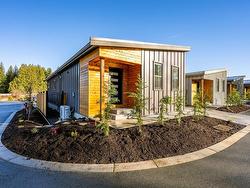 New and improved specification! The Phase 2 Lewis model is a gorgeous contemporary style home spanning 1,104 sq ft, with 2 bedrooms, 1 bathroom and a dreamy south-facing private covered patio. You'll love the open concept kitchen dining layout with soaring 11 7' ceilings, tasteful fixtures and accents throughout, modern high gloss white kitchen cabinets, tiled backsplash and quartz countertops. Don't forget the full appliance package. Large laundry room with sink and upper cabinets. Vaulted ceilings continue through to the bedrooms with large windows giving plenty of light. With steel frame construction, metal roof and metal siding, maintenance is minimal. The homes are incredibly well insulated and the efficient mini split heat pump will keep you warm and cool. Enjoy the extra long concrete driveway, fenced backyard, landscaping, irrigation and a shed as standard. Enjoy the plentiful storage space with numerous closets and a 5' poured concrete crawlspace. GST applies