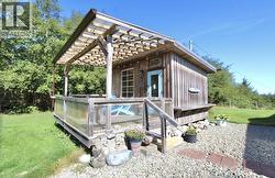 This 15.30-acre property offers panoramic ocean views, privacy, trails, ponds, and a mix of cleared and treed land. The perimeter is fully enclosed with electric fencing for animal proofing, & a separate fenced yard around the home provides safety for kids and pets. There is an orchard of cherry and apple trees, berries and garden area. The 1,200 sq. ft. home features an open-concept gourmet kitchen, dining, and living area, plus one bedroom and one bathroom. Heated floors warm the kitchen, bathroom, and walk-in closet. Additional comforts include engineered hardwood, a wood stove, a heat pump with AC, and a 3-year-old metal roof. Well water is purified with reverse osmosis and iron filtration, & a large enclosed deck extends the living space. A small cabin provides guest accommodations. (id:27)