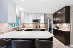 Come home to your peaceful oasis in a quiet cul-de-sac, once you are here you never want to leave. Perfectly situated on a private greenbelt with a sunny south-facing backyard. This beautifully renovated 4 level split home features solid hardwood floors, a newer kitchen with quartz countertops, high-end appliances, Atlas custom cabinetry, & a convenient butler bar. Enjoy a massive, covered sundeck and patio with a 50-year guarantee—ideal for BBQs and entertaining. Extended side yard offers space for a pool or? Renovated main bath includes dual sinks, skylight, and custom storage cabinets. Den off the entry, custom windows with built-in screens, LED décor switches and dimmers. Unfinished bsmt is roughed in for bath & f/p. Two mature apple trees complete this move in ready oasis. Act Now!