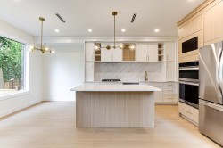 ONE HOME SOLD/LAST ONE REMAINING! MOVE IN READY. NEW 1/2 duplex(no strata fee) W/LEGAL SUITE! On a flat rectangular lot in the sought-after Sunshine Hills/Woods n.hood, located in the prestigious SEAQUAM Secondary catchment! This stunning home w/full AC features 3(or 4?) spacious bedrooms up, including a master bedroom with a private balcony and gorgeous en-suite. There is an office/formal lvgrm and generous famroom on the main, and a media room in the basement-ideal for a home theatre:extra living space. The chef's kitchen boasts a large island, a separate spice kitchen!! finished w/luxurious brass Riobel/Kohler fixtures, designer brass lighting, w/premium finishings throughout with wall panels and ship lap this is possibly the finest home in N.Delta!