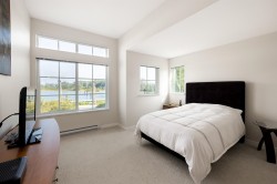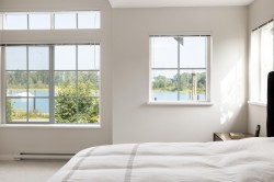 Offering stunning, peaceful views of the river and marina, this duplex home provides luxurious finishes and an easy-care setting! Open plan, with soaring ceilings and huge window areas for views and ample natural light. Custom kitchen offers integrated appliances including wine fridge, gas cooktop, huge central island, living/dining with cozy gas fireplace. Eclipse doors open this living space to a private patio and yard. Great for entertaining. 4 bedrooms+ 3.5 bathrooms up, along with laundry; open landing and den. Large double garage with additional parking for 2 vehicles on the apron. Part of Polygons' Master planned Hampton Cove community. Ownership comes with access to the exclusive Club House; Exercise Centre, Guest Suite, Outdoor Pool & whirlpool/hot tub. Shown by appointment.