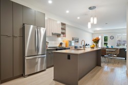 TOWNHOME in sought-after Scott & Nicholson, where contemporary design meets everyday comfort. This beautifully crafted 2 lvl home offers 2 spacious primary suites—each with walk-in closets,2.5 luxurious bthrms, & a bright, open-concept main flr filled w/ natural light. The modern kitchen feat's sleek quartz countertops, a convenient breakfast bar, & flows seamlessly into the dining & living areas. Spa-inspired bathrooms & high-quality finishes throughout elevate the space. Unbeatable location—just steps from Scottsdale Centre, transit, restaurants, & top-rated schools (Cougar Canyon & Seaquam Secondary with IB program). Enjoy exceptional resort-style amenities including: outdoor lounge with fire tables, bocce court & ping pong, indoor lounge w/ full kitchen, fitness centre and games room.