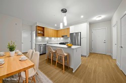 Welcome to Scott & Nicholson in desirable Sunshine Hills! This bright 3 bed, 2 bath corner unit offers an open concept layout with great natural light. The kitchen features quartz counters, a gas stove, stainless steel appliances, and an island with bar seating. It opens to a spacious living/dining area and a 181 sq. ft. balcony with BBQ gas hookup. The master bedroom has a walk-in closet and an ensuite with double sinks and walk-in shower. Two additional bedrooms plus a full bath with tub. All just steps from Walmart Save on Foods, transit, restaurants, and top-rated schools (Cougar Canyon & Seaquam). and temples. Amenities include outdoor lounge with fire tables,bocce court & ping pong, indoor lounge w/ full kitchen, fitness centre and games room. Open House Sunday December 7, 2-4pm