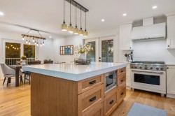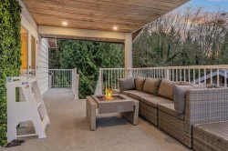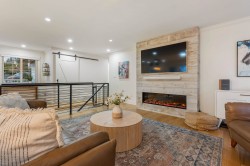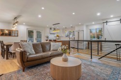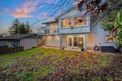 This renovated & meticulously maintained gem backs onto a quiet FORESTED RESERVE, offering privacy + an outdoorsy feel inside out. MODERN FARMHOUSE DESIGN meets thoughtful functionality in this family home. Bright, open layout enhanced by TASTEFUL FINISHES, beautiful accent lighting, stylish MODERN RAILINGS & plenty of space for a growing family. The kitchen is a standout, equipped w/PREMIUM GE CAFE appliances w/brass accents, incl a GAS RANGE, a BARN-DOOR PANTRY + an office nook/study area. Versatile ground floor is perfect for multi-generational living or a SUITE, complete with a kitchenette, a charming brick fireplace & WALKOUT doors opening to the SOUTH YARD. Enjoy peekaboo west-facing city views from the upper balcony! COMFORT + CHARACTER in this desirable North Delta neighbourhood!