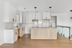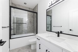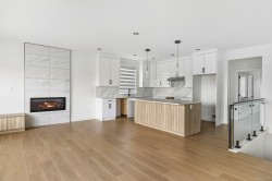Welcome to your brand-new home in beautiful Maple Bay, where mountain views & cotton candy sunsets set the tone for relaxed, elevated living. Thoughtfully designed with over 2,775sq.ft, this 5 bed + office, 4 bath home offers the perfect blend of comfort, style & flexibility for growing families or multigenerational living. Upstairs, enjoy a bright & open layout with a cozy gas fireplace, a modern kitchen with quartz counters & a large covered deck ideal for entertaining or unwinding year-round. The primary bedroom includes ample closet space & stunning ensuite. While 2 secondary beds & a laundry room keeps this floor plan efficient for day to day living. On the ground floor you will find a handy office, 2pc bath plus two more guest beds, 4pc bath & living area with kitchenette rough ins. Easy potential for a large 1 or 2 bed in-law suite. Landscaping with irrigation, fencing & window coverings included! Located close to beaches, marinas, schools & hiking trails.