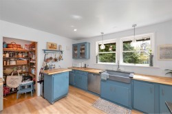 One of the original, historic Fairbridge homes circa 1935; this character-filled home is nestled on a beautiful, flat 0.57-acre lot. Named "Richard's Cottage," it has four bedrooms with an option for another, using the den on the main. Two large garages capable of housing 3 to 4 cars flank the home. A large sun deck takes in the peaceful, mature surroundings. Over $200,000 in updates in the last five years: 2 custom renovated bathrooms (incl heated floors & towel racks), kitchen reno including new butcher block & granite counters, two new garage doors (newly enclosed carport to garage reno), new gutters with LeafFilter system, custom storm windows incorporated with original character windows, new carpeting in two bedrooms & on stairs, two newly rebuilt decks, new hot water tank. Excellent, quiet, rural location yet less than 10 minutes to Duncan & easy commuting highway access. More than just a house, it's also a part of history & a unique place your family will love to call home.