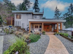 Discover sophisticated West Coast living in this tranquil waterfront community. Set within a protected cove with beautiful ocean views, this architecturally intriguing home blends tasteful updates with the natural beauty of its surroundings. Thoughtfully designed, the 4 bedroom plus den, 2,857 sq.ft. layout offers a refined yet relaxed style with wood and propane fireplaces, a heat pump, radiant tile floors, and inviting spaces for entertaining or quiet moments. Enjoy easy beach access with tiered patios, perfect for swimming or launching a kayak, plus a private hot tub. Close to walking trails, Smugglers Cove Marine Park, a marina, general store, and restaurants. This private and peaceful home connected to nature offers exceptional waterfront living on the Sunshine Coast.