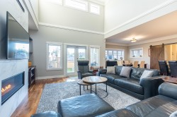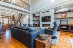 Immaculate, custom built,3000 plus sq ft home. This Gorgeous home comes complete with everything for a discerning Buyer. Custom designed with the master bedroom on the main floor and a luxurious 5 piece ensuite with separate walk-in shower and free standing soaker tub & fireplace. Built to perfection with a combined living dining and kitchen with S/S appliances(New B-I oven & Fridge 2023) and custom cabinets. High-end finishing adorn every room with high ceilings, hardwood floors, tile, crown and new paint. Upstairs has 2 large bedrooms and a media(games)room. Oversized garage with lots of storage, almost 10,000 SqFt lot, fully fenced and landscaped yard with U/G Sprinklers. New Paint, Fully air-conditioned with updated heat pump(2020),heat exchanger(2019)HWT(2021)and RV parking. Call Now.