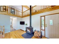 Beautiful Custom-Built Family Home on Over an Acre! Welcome to this stunning 5-bedroom, 2-bathroom family home, perfectly nestled on a serene 1.095-acre lot backing onto crown land, just steps from the Elk River. Thoughtfully designed with an open-concept layout and expansive windows, this bright, inviting home is filled with natural light and offers peaceful views of the park-like setting and Hosmer Mountain! The impressive vaulted great room features a cozy wood-burning fireplace and patio doors that lead to a private, tree-lined backyard. The spacious kitchen flows seamlessly to the dining area, creating the perfect space for entertaining. The main level includes one bedroom, a full bathroom, laundry, and access to a recently upgraded secluded back deck, built with pressure-treated wood. Upstairs, a charming loft overlooks the great room, alongside four additional bedrooms, including a spacious primary suite with a walk-in closet and access to a full bathroom. Even more, brand new luxury vinyl plank has just been masterfully installed on this level! Additional features include an attached double car garage, wood storage shed, access to nature trails, and the tranquility of country living just minutes from town amenities. This is the ideal family home for families seeking space, comfort, and a connection to nature. (id:27)