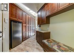 This award-winning home is designed for those who value both elegance and lifestyle, with the backyard as its crown jewel. Just minutes from downtown Kelowna, this property showcases a private resort-style oasis where every day feels like a getaway. The sparkling in-ground saltwater pool is surrounded by expansive stamped concrete patios, vibrant landscaping, and multiple lounge areas that flow seamlessly from sun-soaked relaxation to shaded retreats - creating the perfect setting for lively gatherings, quiet evenings under the stars, or weekend pool parties with friends and family. Inside, soaring ceilings and timeless hardwood anchor an open-concept design centered on a Westwood custom kitchen with granite counters, oversized island, and professional-grade appliances. The dining and Living areas, complete with a feature gas fireplace, connect effortlessly to the outdoor lounge, extending the Living space. The king-sized primary suite offers a lavish walk-in closet, heated floors, double vanities, a custom shower, and a soaker tub, while a second bedroom with a wall bed/desk and private entrance makes the perfect guest suite or office. A second bath and laundry complete the main level, while the finished lower level impresses with a massive recreation space, full wet bar, office, media/games room, bedroom, and bath. Additional highlights include a triple tandem garage, owned geothermal system, and a pet-friendly community with landscaped pathways and ponds. (id:27)