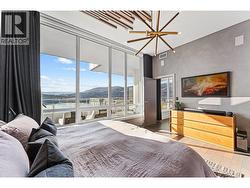 Stunning sub-penthouse on the 33rd floor of One Water Street's East Tower. This expansive 2-bedroom plus den offers THE BEST and MOST breathtaking views of Kelowna, Okanagan Lake, and the mountains. The open-concept design features 10'5"" ceilings, modern finishes, custom lighting, Control4 automation (blinds, lights, sound, heating), and an expansive patio. The chef's kitchen is an entertainer’s dream, with quartz countertops, a waterfall island, Sub-Zero refrigerator, Wolf gas cooktop, and built-in wall oven. Floor-to-ceiling windows throughout fill the space with natural light and offer stunning views, with easy access to the oversized wrap-around patio. Transform the living room into a home theatre with custom sound absorption in ceiling and projector and screen unit. Addition of a custom wall wine cabinet. The stunning primary suite offers a private deck, spa-inspired ensuite with a quartz island, soaker tub with city views, a tile shower, and dual walk-in closets. Custom wall treatments on primary bed walls and guest room walls. 2 parking stalls, large storage locker. Residents of this premium property enjoy world-class amenities, including a BBQ and firepit enclaves, oversized hot tub, two pools, a multi-purpose entertainment room, a 2,200 sq ft health club, pilates area, pickle ball court and a dog park—all within a 1.3-acre oasis. (id:27)