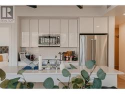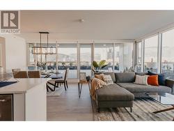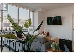 UNWIND. ENTERTAIN. REPEAT. | For those that trades weekends away for evenings on the patio, this is home. A modern 2 bed + den CORNER HOME in the heart of downtown Kelowna with clean lines, floor-to-ceiling windows, and a RARE HUGE PRIVATE PATIO - that changes everything. Lounge with a coffee, host friends for dinner, sip something cold under the stars, or stretch out in the sunshine, this space turns every day into a vibe. Inside, the layout flows effortlessly: two spacious bedrooms, a versatile den for your WFH setup, reading nook, or Peloton zone, and a sleek kitchen designed for real life and elevated hosting. Natural light floods the living space, while in-suite laundry, durable modern finishes, and secure building access make things easy. Outside your door? Everything Kelowna offers is within reach, walk to the lake, brunch spots, yoga studios, wine bars, breweries, boutiques, concerts, and the boardwalk. This is the perfect blend of low-maintenance luxury, lifestyle freedom, and downtown energy. Whether you’re downsizing with intention or upgrading your every day. THIS IS THE ONE. (id:27)