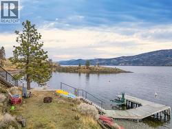 A rare opportunity to own an architectural gem on Okanagan Lake. Welcome to 15 Traders Cove Road. This striking home offers over 70 ft of private lake frontage with panoramic, unobstructed views across Traders Cove Regional Park. Thoughtfully renovated, the residence features vaulted ceilings and oversized windows that invite natural light and frame breathtaking views. The modern kitchen includes quartz counters, a gas range, and custom cabinetry. Multiple lake-facing decks create seamless indoor-outdoor living, while well a custom stair well leads to a private dock with deep-water moorage, a lakeside fire pit, and a kayak launch area. The lower-level suite, with its own kitchen and entrance, is perfect for guests, extended family, or a B&B. Surrounded by parkland, the home enjoys exceptional privacy and is alive with wildlife: birds, deer, and more. At the top of the lot, there may be potential to build a detached garage or carriage house, offering even more flexibility for future use (buyer to verify with municipality). Outside the Speculation & Vacancy Tax zone, this turn-key property is ideal as a full-time residence or seasonal getaway. Fully paid solar panels to be installed Jan 2026. Peaceful Traders Cove is just minutes by car or boat from downtown Kelowna. (id:27)