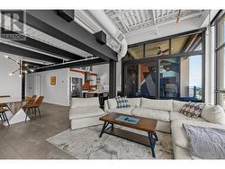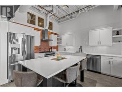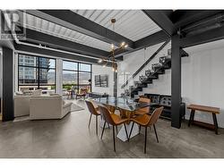 Discover Kelowna's most unique and luxurious condo—a fully renovated, lofted industrial-style masterpiece with unparalleled lake and city views. Perched atop a professional building with just five exclusive residences, this property promises an extraordinary living experience. The main floor boasts an expansive open-concept design featuring soaring high ceilings and dramatic floor-to-ceiling windows that flood the space with natural light. The stunning kitchen, equipped with top-of-the-line appliances opens to a heated, covered patio—perfect for year-round alfresco dining. Ascend to the primary retreat, where you'll be captivated by sweeping lake and city vistas. Every inch of this home has been meticulously updated with new flooring, a modern kitchen, state-of-the-art appliances, fresh paint, and elegant baseboards. This pet- and rental-friendly building offers the convenience of two large indoor parking stall. A property of this caliber must be seen to be truly appreciated. Don’t miss the opportunity to own this exceptional downtown loft and experience its unparalleled luxury and uniqueness firsthand. (id:27)