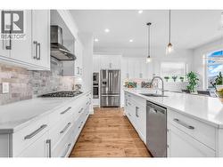 Wake up to panoramic, postcard-perfect views of Okanagan Lake from every room in this stunning custom-built Rykon home, ideally situated on a quiet cul-de-sac in the highly sought-after McKinley Beach community. Thoughtfully designed for both everyday living and effortless entertaining, the main level welcomes you with an open-concept layout and expansive windows that frame the sparkling lake. The chef-inspired kitchen is the heart of the home, featuring an impressive 11-foot quartz island, a walk-in butler’s pantry with custom built-ins, and elegant finishes throughout. Three of the four spacious bedrooms boast sweeping lake views and luxurious en-suites offering the perfect blend of comfort, privacy, and tranquillity. The professionally finished lower level, completed in 2024, provides flexible space ideal for guests, a home office, or a recreation area. Even the double garage has been upgraded with new epoxy flooring, and the cul-de-sac location allows extra parking for visitors. Located in McKinley Beach, a vibrant lakeside community with a private marina, beach access, and scenic walking trails, you are just 15 minutes from both downtown Kelowna and the airport. Homes of this calibre, with such breathtaking views and meticulous craftsmanship, are truly rare. Experience lakefront living at its finest—book your private showing today. Measurements are from the Builders' Plans. (id:27)