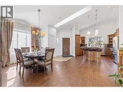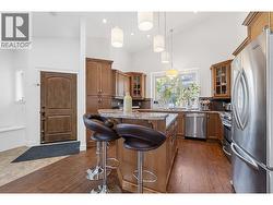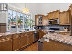 Exceptional 6-Bed, 4-Bath Custom Home with Legal Suite in Kettle Valley Nestled in a quiet cul-de-sac in the highly desirable Kettle Valley neighborhood, this exquisite 3,129 sq. ft. custom-built home combines timeless design, modern amenities, and versatile living spaces. Featuring a legal 3-bedroom suite, expansive double garage, and ample parking, this property is a rare gem in one of Kelowna's most coveted communities. The main floor boasts a bright, open-concept layout with soaring vaulted ceilings and large windows that capture sweeping views of the lake and surrounding mountains. The gourmet kitchen is a true highlight, offering a gas range, a central island, and custom cabinetry, all seamlessly flowing into the spacious living and dining areas. Sliding doors from the dining room lead to a generous covered wrap-around balcony, complete with a gas hook-up perfect for year-round outdoor entertaining. The master retreat is a serene sanctuary, featuring a king-sized bedroom, a walk-in closet, and ensuite with a luxurious separate shower. Two additional well-appointed bedrooms, a full bathroom, and a convenient laundry complete the main floor. Downstairs, the fully self-contained 3-bedroom suite offers the ideal space for extended family, guests, or rental income. With its own entrance, the suite features a spacious living room, a separate dining area, and a private walk-out balcony. The suite also includes two generous bedrooms, master with an ensuite bathroom. (id:27)