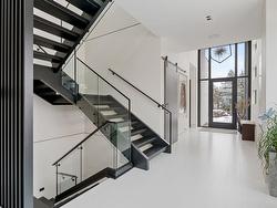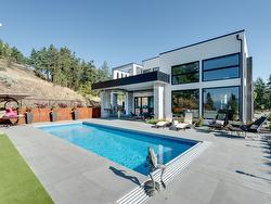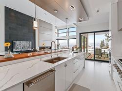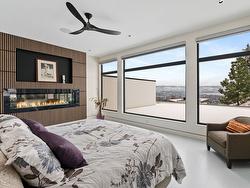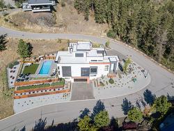 Nestled in the prestigious Highpointe community of Kelowna, this architectural masterpiece redefines modern luxury with views of the city, Okanagan Lake and surrounding mountains. This home is a visual showpiece, with striking geometric lines, floor-to-ceiling windows and meticulous landscaping. The interior boasts an impressive design, double-height ceilings, and seamless negative baseboards that exude elegance. The open-concept living space centers around a stunning linear fireplace, while the gourmet kitchen is a chef’s dream with high-end appliances, a waterfall-edge island, and a butler’s pantry for effortless entertaining. A custom elevator provides convenient access to all levels, and two separate garages accommodate up to 9 vehicles, perfect for car enthusiasts. Each bedroom is a private retreat with designer finishes and spa-like ensuites, including the luxurious primary suite with a walk-in closet and private outdoor access. The professionally landscaped exterior features a dazzling pool, an outdoor kitchen, and multi-tiered terraces, ideal for entertaining or relaxation. SMART home technology ensures convenience, and the property’s location offers both privacy and proximity to downtown Kelowna, world-class wineries, golf courses and recreational trails. This home is a statement of sophistication and lifestyle. Contact Team Simpson Real Estate for your private tour of this extraordinary property.