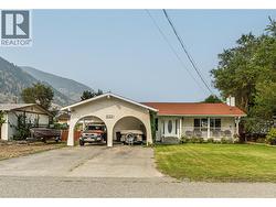 Welcome to scenic Keremeos, where small-town charm meets modern comfort! This lovely mediterranean-style 4-bedroom, 3-bathroom entry-level rancher with a full basement is tucked away on the desirable upper bench, offering peace, privacy & spectacular mountain views. A lush, landscaped yard with a covered front porch greets you, the perfect place for morning coffee & views of majestic K mountain. On the main floor, discover a functional layout with 3 beds, 2 baths, living room with large picture window & cozy wood-burning fireplace, dining room & spacious kitchen with new stove & dishwasher. Primary suite offers a 3-pce ensuite & small walk-in closet. Step off the kitchen area to a large patio & backyard oasis, fully fenced with a wood-fired hot tub, detached heated workshop, fire pit, gas bbq hookup & garden beds, perfect for gardening, entertaining, hobbies or simply relaxing. The basement provides a 4th bedroom, 6-pce bath (2 urinals!), large family room with gas f/p, huge laundry room & generous storage areas. Separate entry for a possible suite. Numerous upgrades include a newer roof, furnace, central A/C, hot water tank, windows, plumbing, fixtures, faucets, some kitchen appliances & back deck. Attached double carport & plenty of paved parking including boat & RV parking. Located on a quiet street, this home is just minutes from schools, parks, shopping & the community center. Only 30 minutes from Penticton, with wineries, orchards & outdoor recreation at your doorstep. (id:27)